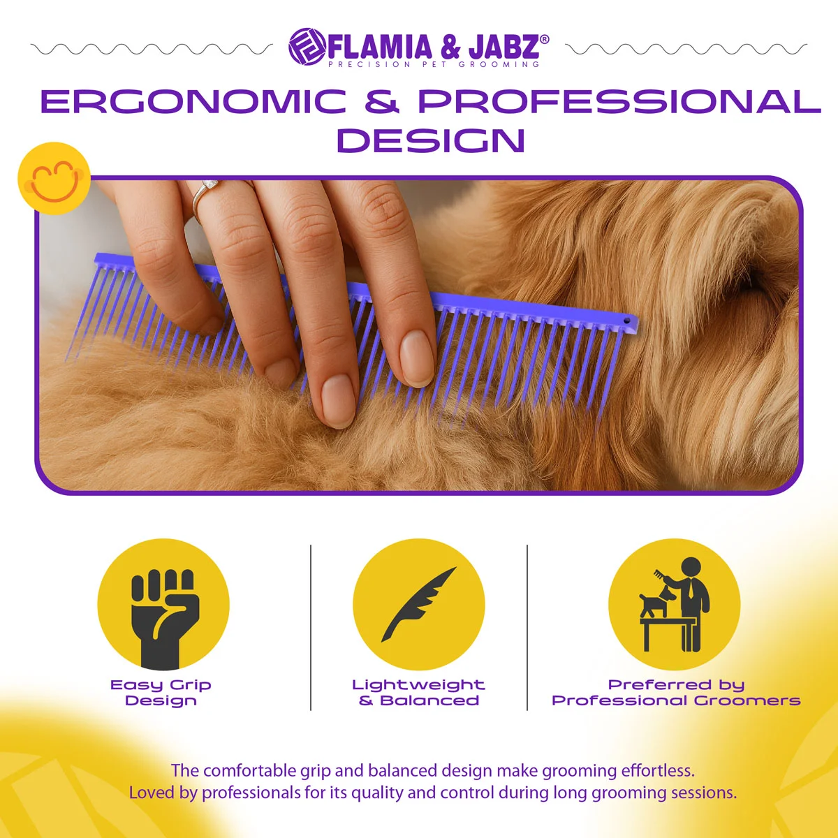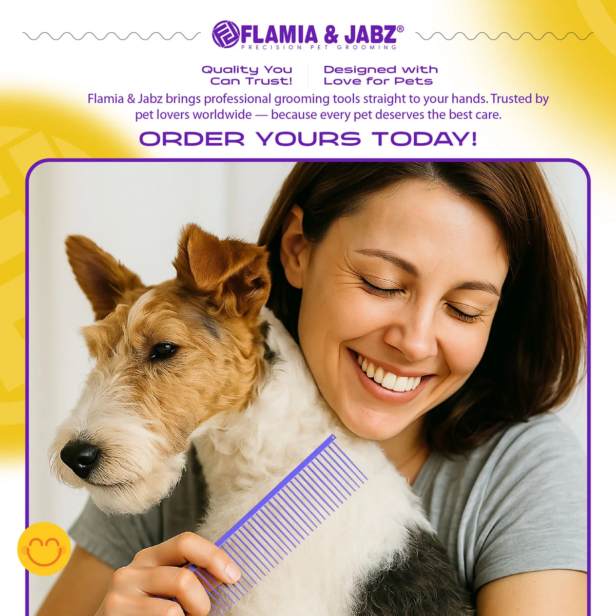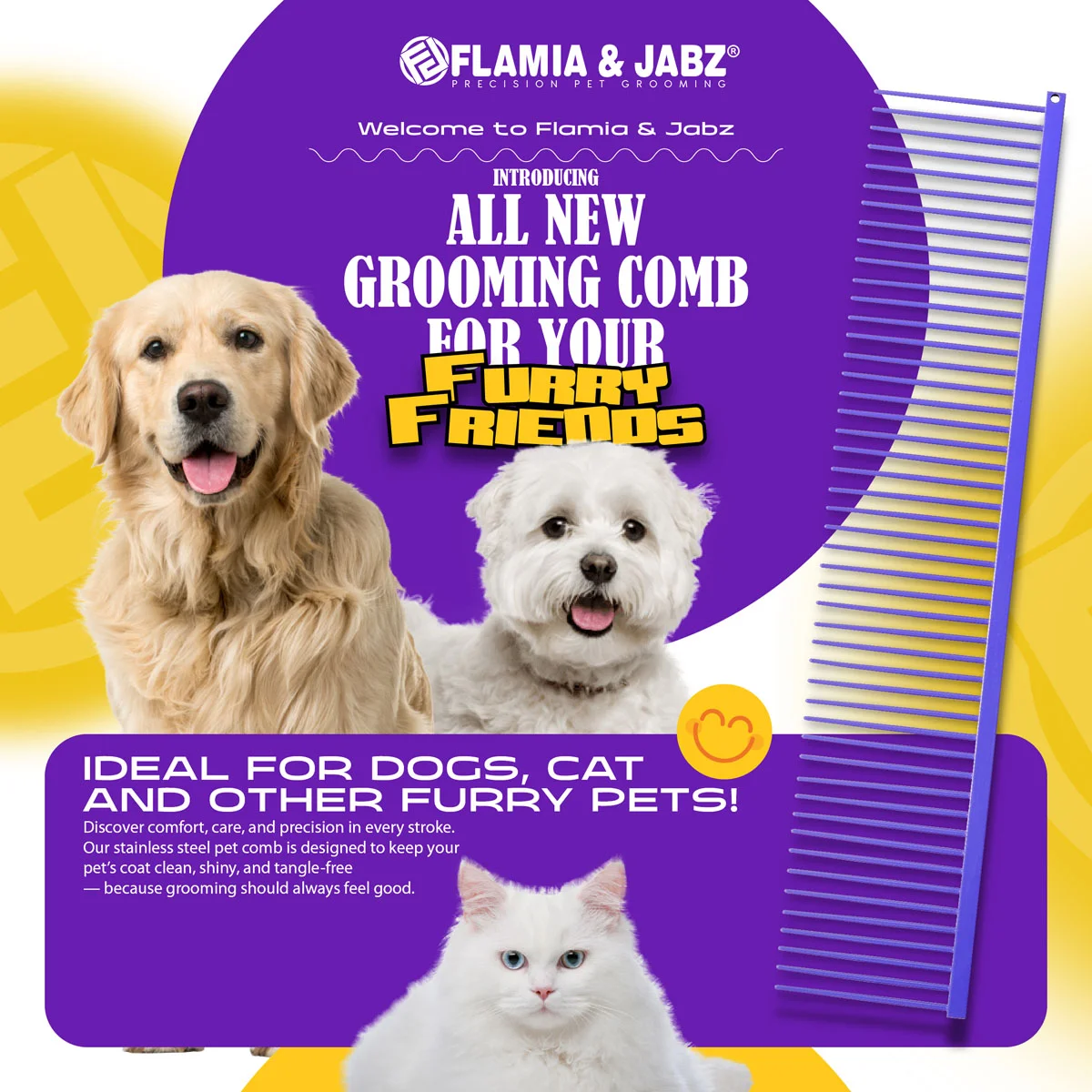 Stainless Steel Pet Grooming Comb – Anti-Rust, Rounded Pins – Perfect for Dogs, Cats & All Fur Types | Flamia & Jabz