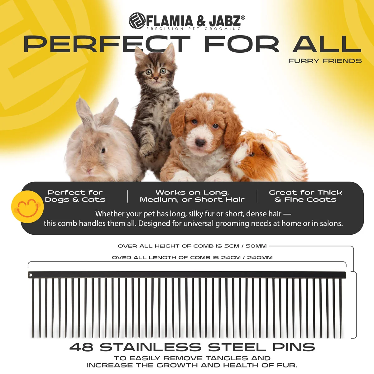 Give your furry friends the gentle, professional grooming they deserve with the Flamia & Jabz Stainless Steel Pin Comb — crafted for comfort, durability, and effortless coat care.